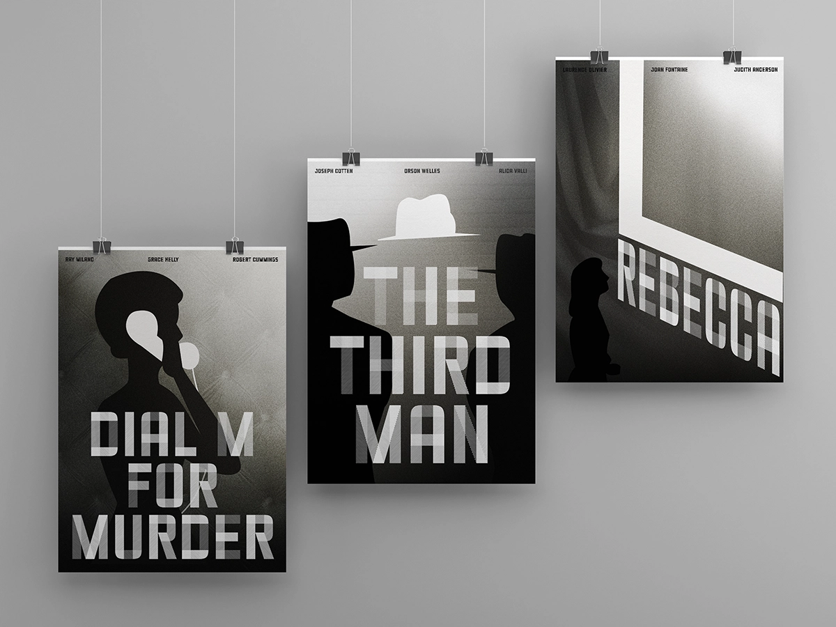 Pour ce projet, nous avons conçu une série d’affiches minimalistes en noir et blanc, rendant hommage à trois grands classiques du cinéma à suspense. Ces films ont en commun un enjeu central : l’identité de leurs personnages.