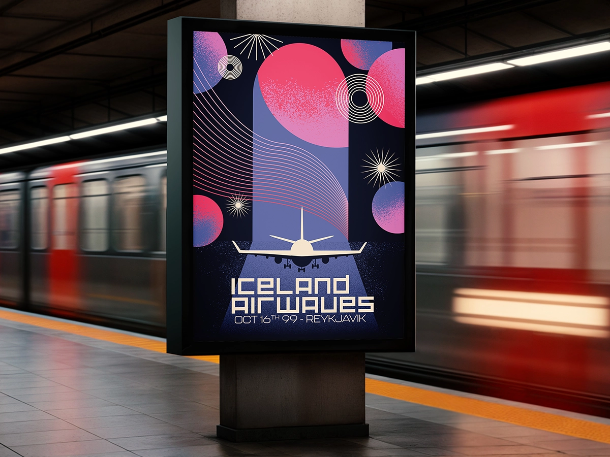 L’objectif était de créer une affiche visuellement percutante, qui capte l’attention tout en restant fidèle à l’énergie et à l’univers singulier d’Iceland Airwaves.